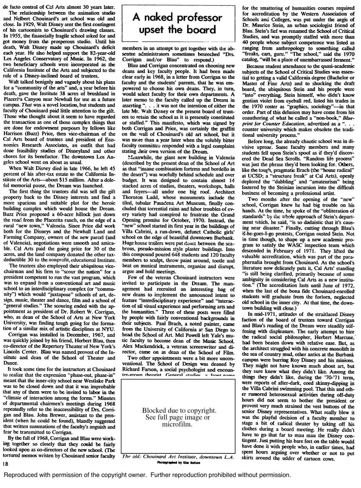 The Chouinard Art Institute closed it’s doors near downtown L.A. in 1972 under what many considered to be controversial circumstances. Walt Disney’s promise to keep the school alive morphed into the awkward realities of closure and transition, removal of longterm teachers, and to some, the neglect of a 50 year body of work unparalleled in art history. An article in the L.A. Times at the time articulated it as a debacle; others considered it evolutionary and necessary. Most likely it was a combination of both.