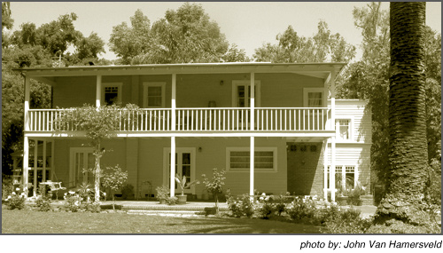 The house is a turn of the century Monterrey Colonial Eclectic farm-style house with additions built under Nelbert’s guidance through 1919. In these additions, the architecture changes without any formal regard. Various features such as Batchelder tile affixed to the House, a pond constructed of Batchelder tile, numerous patios, porches and spaces, are highlights.